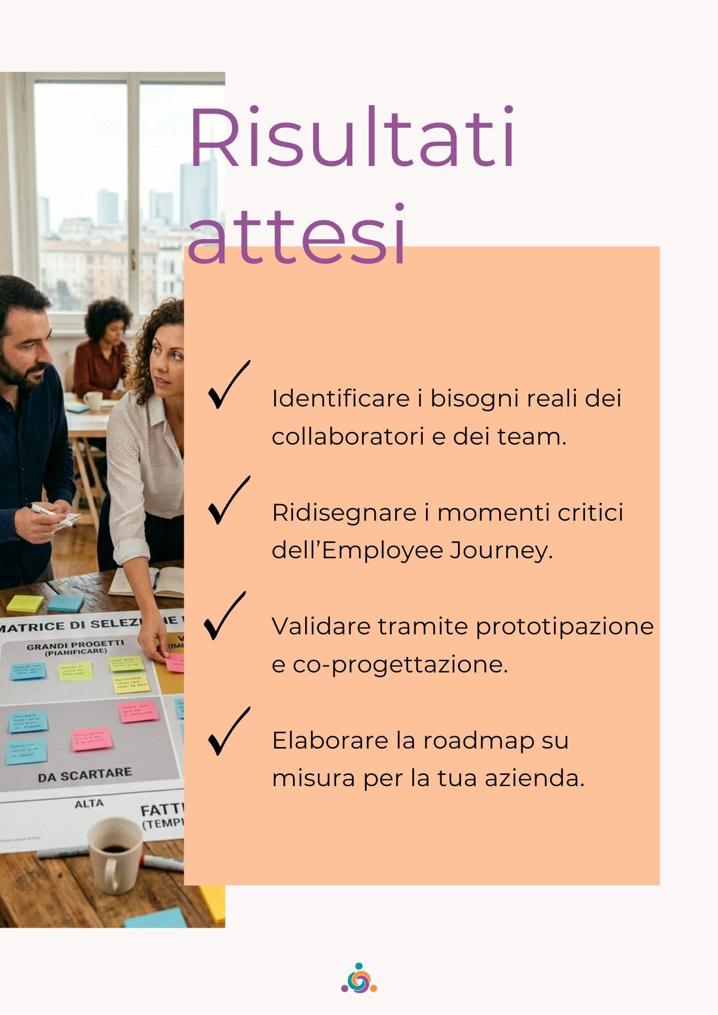 Come output avrai un set di soluzioni prioritarie, progettate per essere implementabili e allineate agli obiettivi di business.
