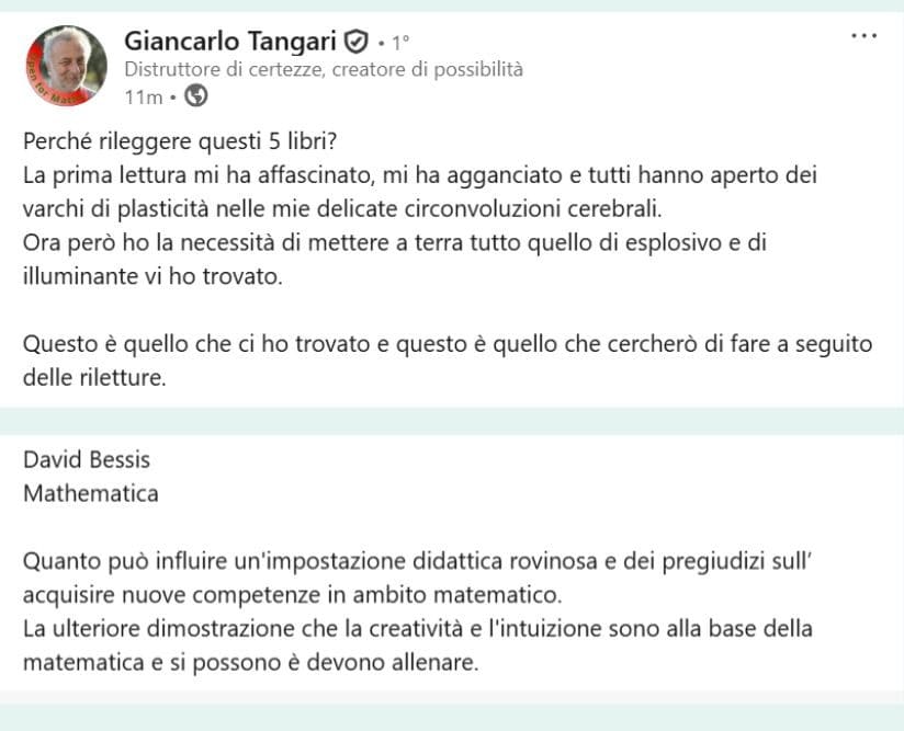La ulteriore dimostrazione che la creatività e l’intuizione sono alla base della matematica e si possono e devono allenare.”
